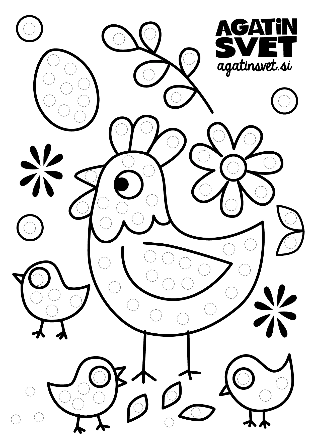 Tapkanje prijetno sprošča otrokovo zapestje, kar prispeva k pravilnemu fiziološkemu razvoju. Prenesite si našo pobarvanko z zajčkom, piščančkom ali kokošjo, ki jo lahko otroci pobarvajo in tapkajo z ergonomskimi otroškimi flomastri, ki jih najdete v Agatinem svetu.