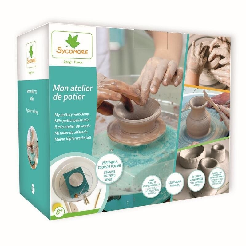 Ali vaše otroke zanima ustvarjanje s keramično glino? Ta komplet je zasnovan posebej za otroke od 8 let starosti in vsebuje pravo lončarsko kolo. Odslej lahko otroci ustvarjajo čudovite keramične izdelke v udobju svojega doma kadarkoli se jim zahoče.