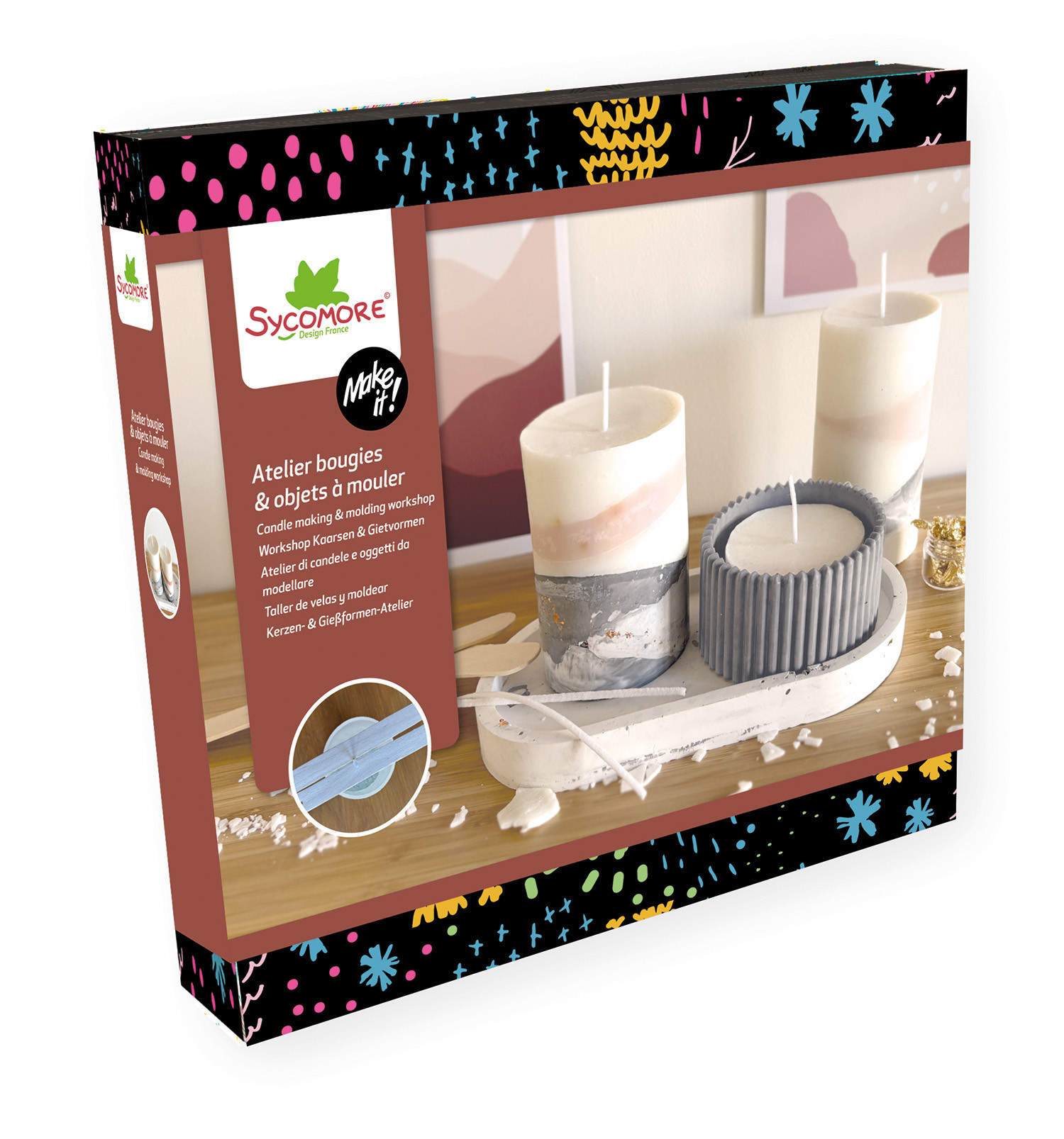 Ustvarjalna prostočasna dejavnost za otroke od 12 let dalje. Komplet vsebuje vse, kar potrebujete za izdelavo 2 izvirnih, modernih sveč iz sojinega voska in jesmonitnega svečnika.