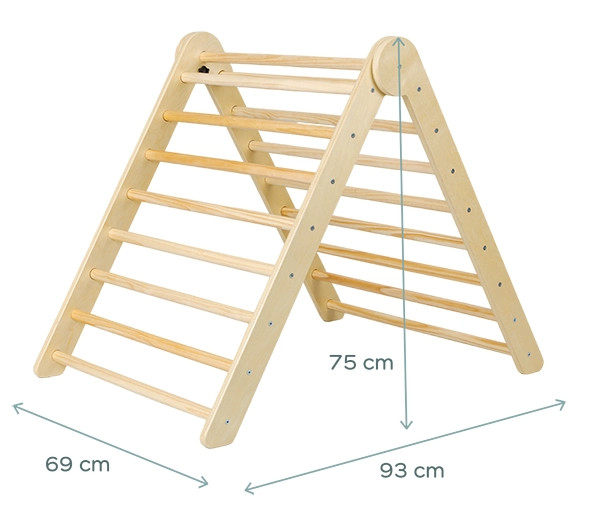 Otroci so motivirani, da na trikotniku ustvarjajo nove gibalne izzive, jih premagujejo in tako z lastno voljo pripomorejo h gradnji samozavesti in občutka zadovoljstva sami s sabo. Trikotnik je lahek in preprost za zlaganje, kar vam bo prišlo prav, ko ga ne boste uporabljali in ga boste morali pospraviti. Priporočamo, da trikotnik razširite z desko s stopnicami ali plezalno desko. Primerno za notranjost.
